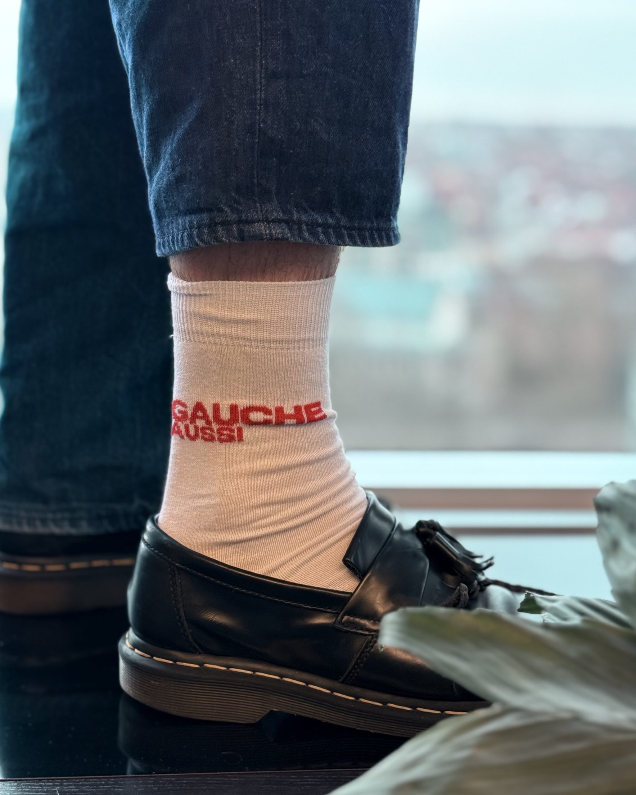 Ces chaussettes ne sont pas celles de l’archiduchesse (pas de ça chez nous), mais elles sont bien Made in Europe, anti fast-fashion, et surtout… elles sont à gauche. Toutes. Même celles pour le pied droit. Tout ce qu’il faut pour écraser ceux qui marchent sur nos droits.